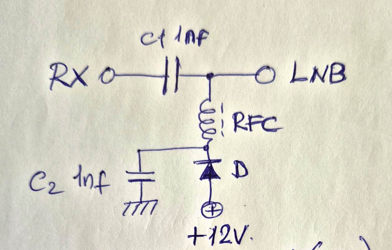 C1 Kondansatörü LNB den gelen RF Sinyalinin RX tarafına ulaşmasını ve DC voltajın Blokaj -durdurma işi görmesi için kullanılmıştır.